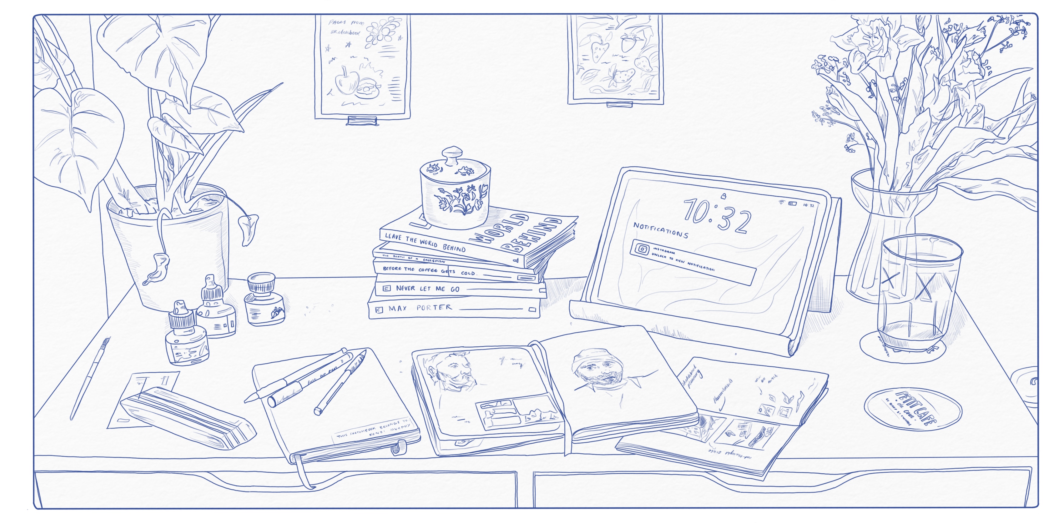 John Murray Press Cover 2023 'At Peace' - Drawings Liverpool Student Guides Reportage Drawings Penguin Cover 2022 'Home' - Short Animations